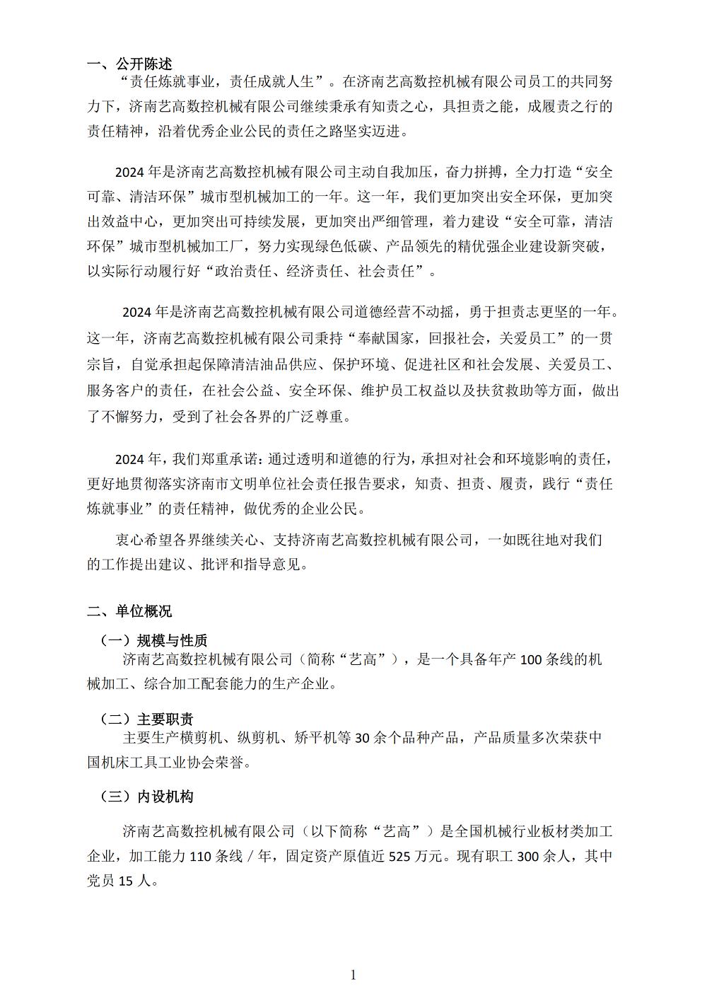 【濟(jì)南藝高數(shù)控機(jī)械有限公司2024年度企業(yè)社會責(zé)任報(bào)告】公示